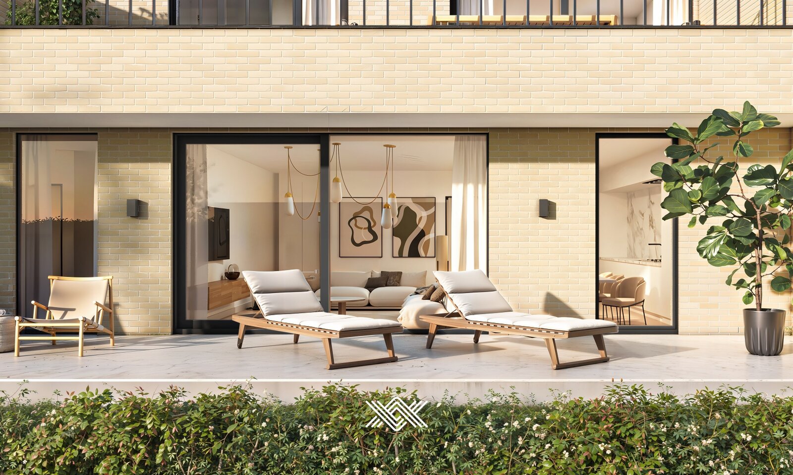 Elk appartement heeft een privéterras om in alle rust van de zon te genieten. Het gebouw heeft een grote ondergrondse verdieping met open parkeerplaatsen, ruime bergingen en een fietsenstalling, allen gemakkelijk bereikbaar via de lift.