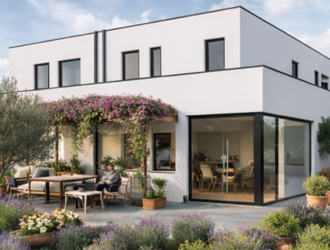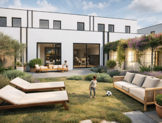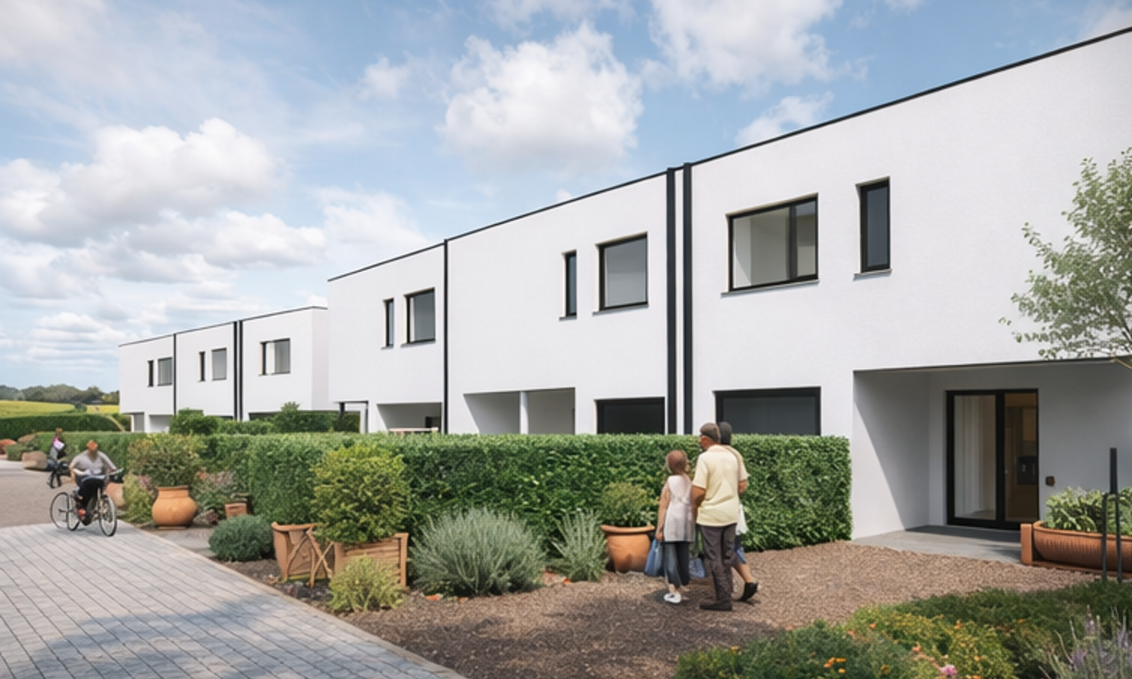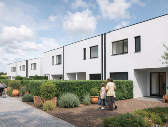 Het woonproject APERONI omvat 6 Bijna-Energieneutrale nieuwbouwwoningen met elk een eigen terras en een ruime tuin.