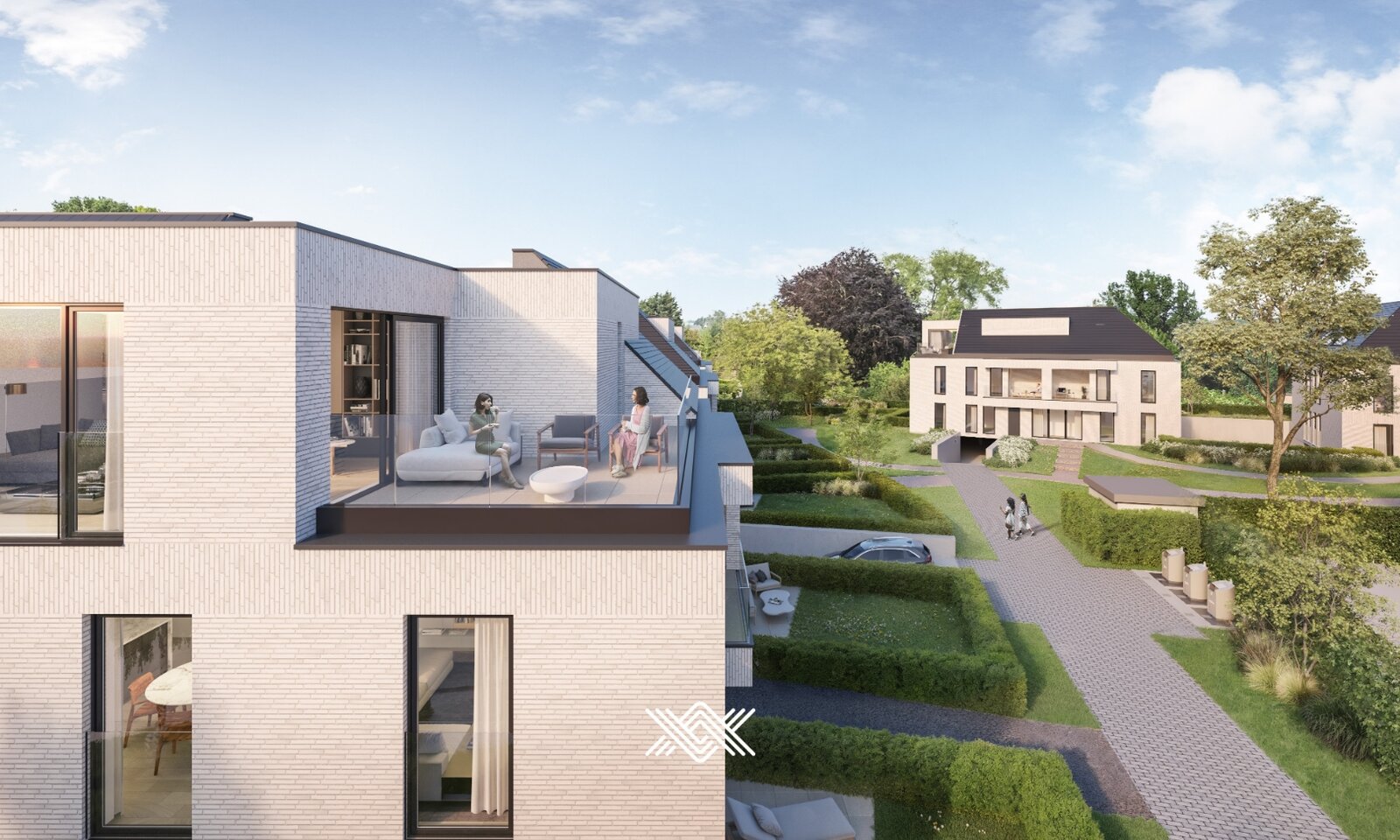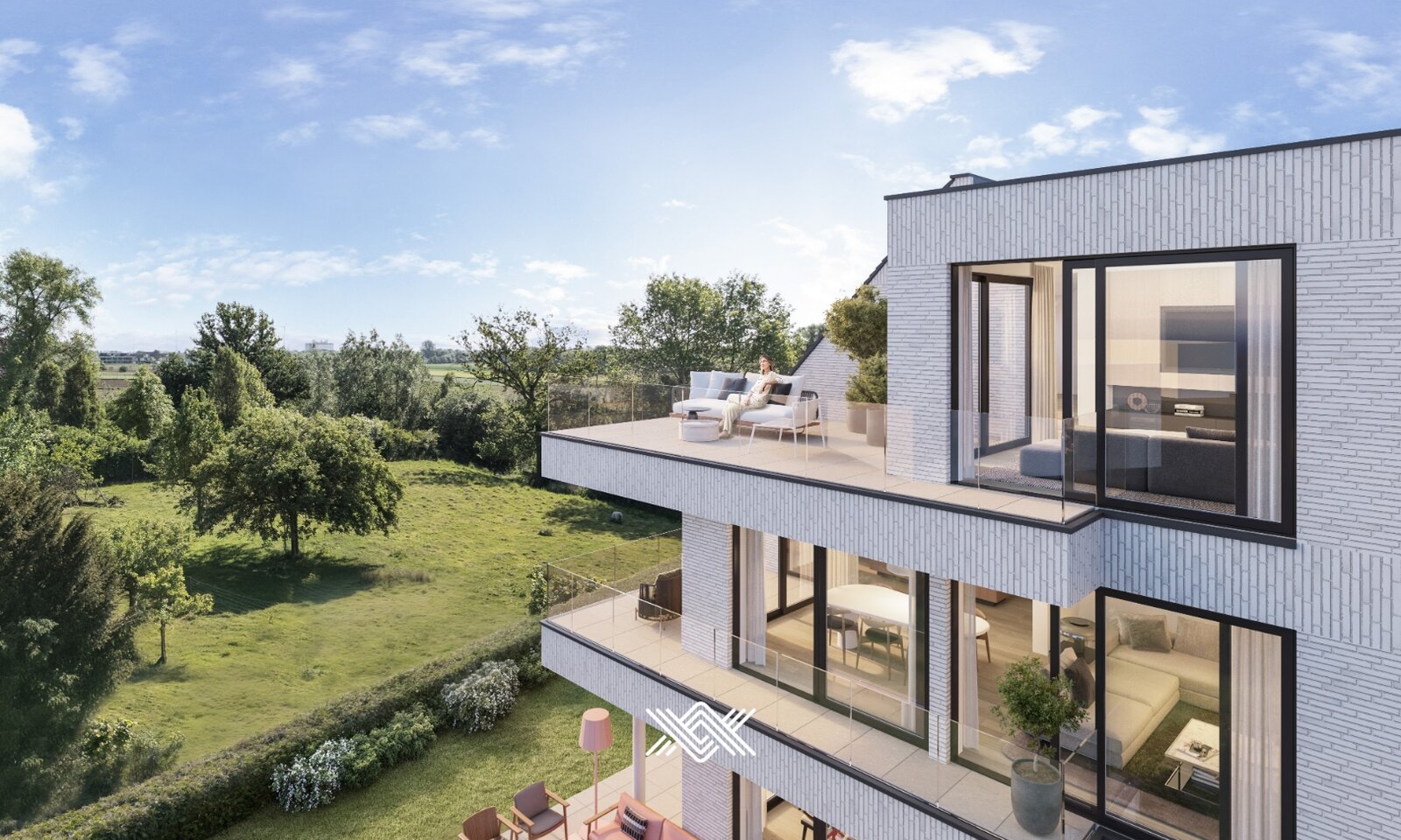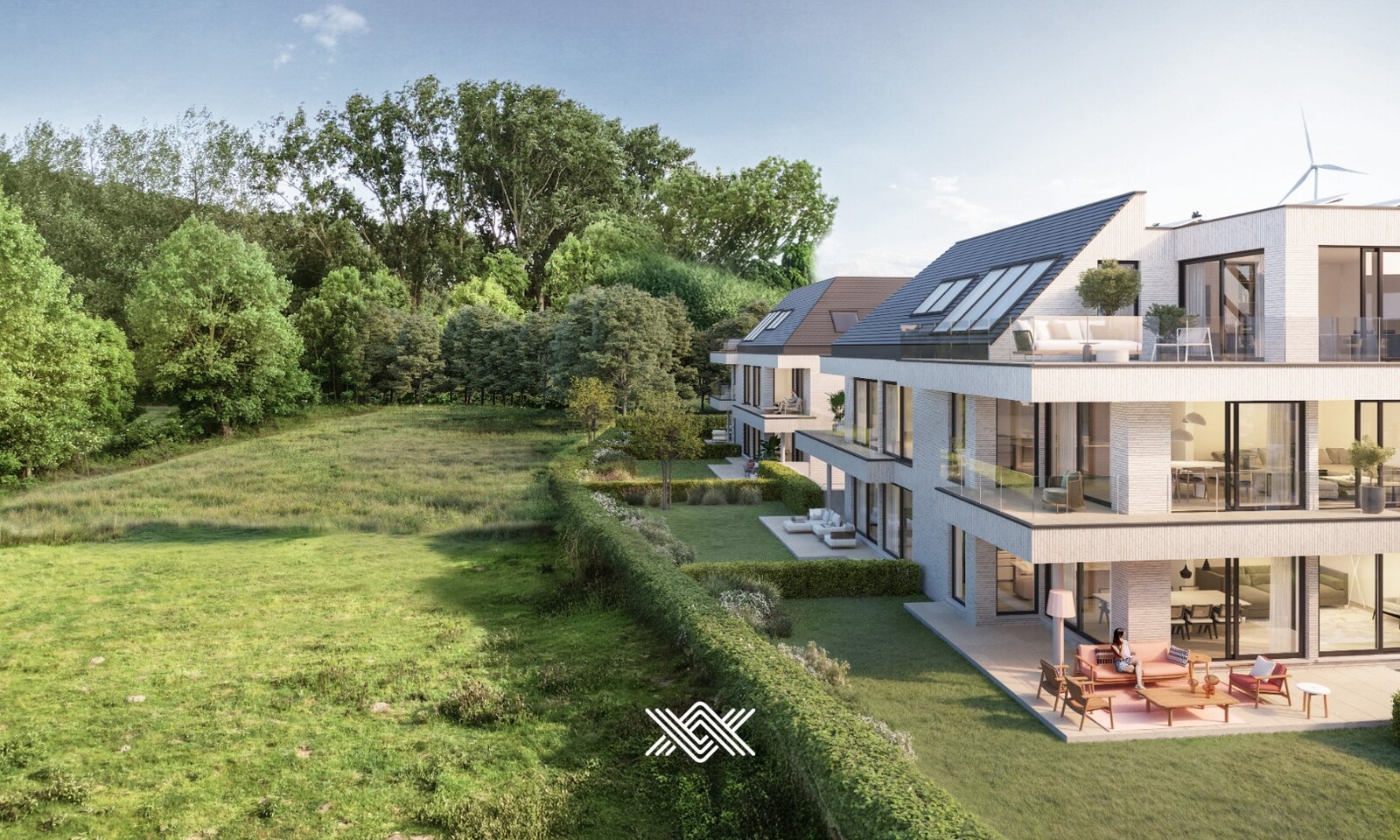 Elke woonentiteit is zorgvuldig en doordacht ingedeeld, waarbij grote raampartijen een centrale rol spelen. Deze zorgen voor een overvloed aan natuurlijk licht en versterken het gevoel van ruimte en openheid binnen elk appartement. De woonvolumes zijn zorgvuldig ingeplant rond een aangelegd binnengebied dat rust, verbondenheid en groenbeleving biedt. De zuidgerichte terrassen zorgen voor een optimale beleving van de buitenruimte en bieden unieke uitzichten.