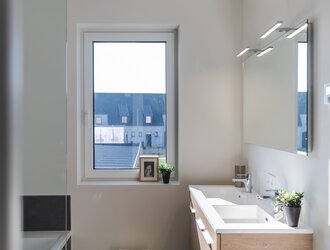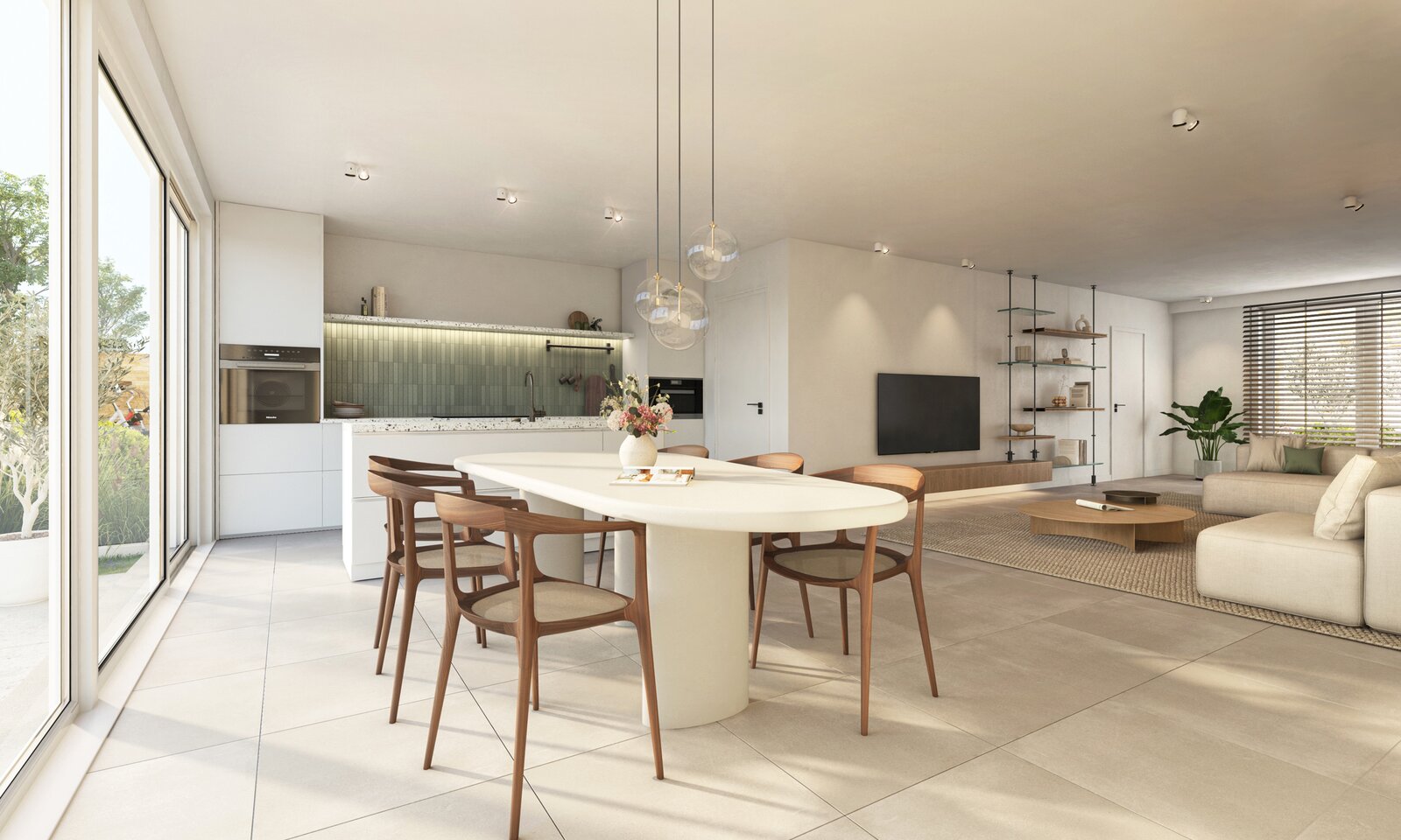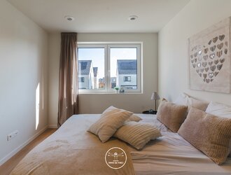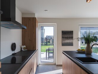 De sleutel-op-de-deur woningen van Begijnhof genieten een hoogwaardige afwerking en laag energiepeil. Zo is gekozen voor een warmtepomp in combinatie met vloerverwarming, zonnepanelen en driedubbele beglazing.