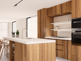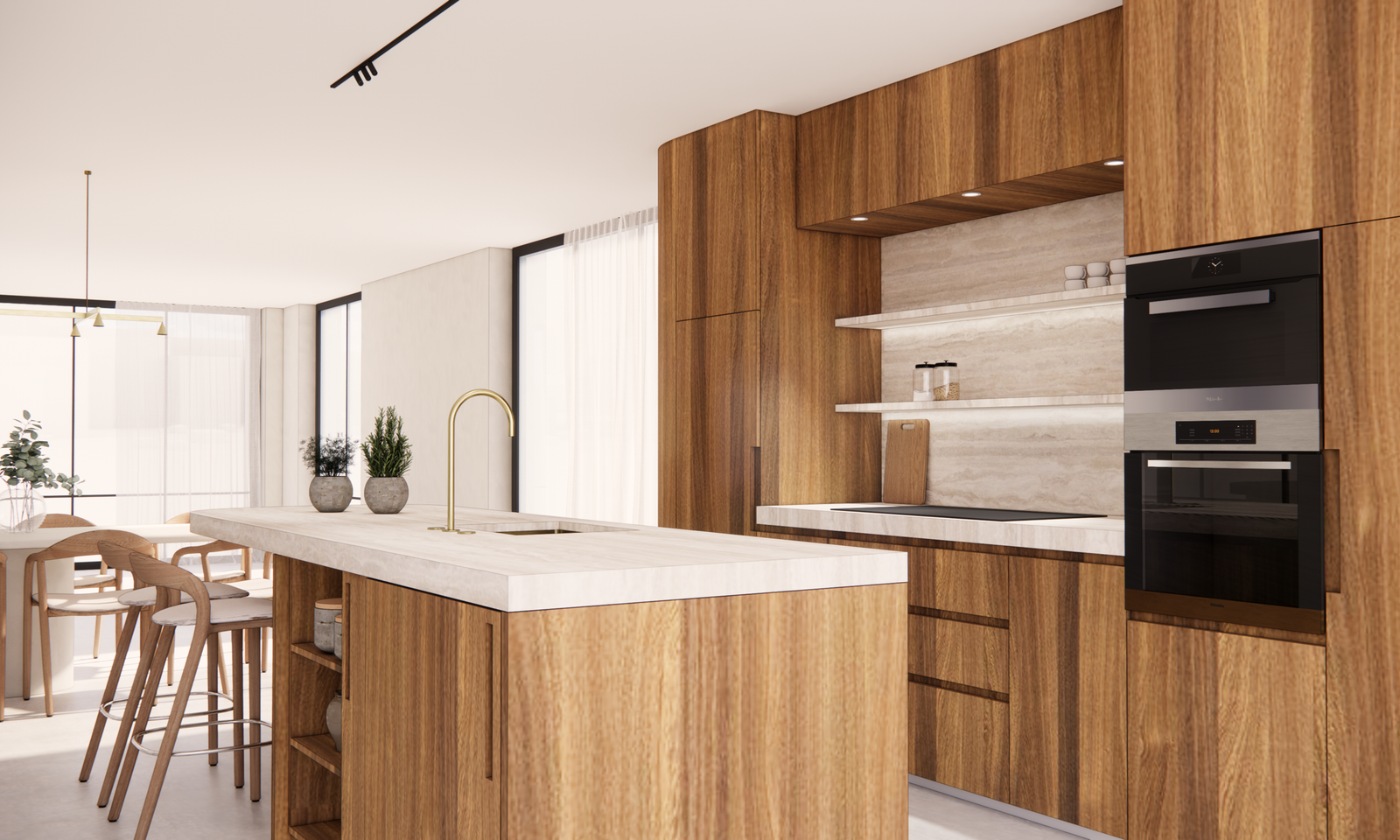 De woningen zijn voorzien van luxueuze extra’s, zoals de carport met rieten dak bij villa 2 en 3, terwijl villa 1 en 4 beschikken over een inpandige garage, die functionaliteit en stijl naadloos met elkaar verbindt.